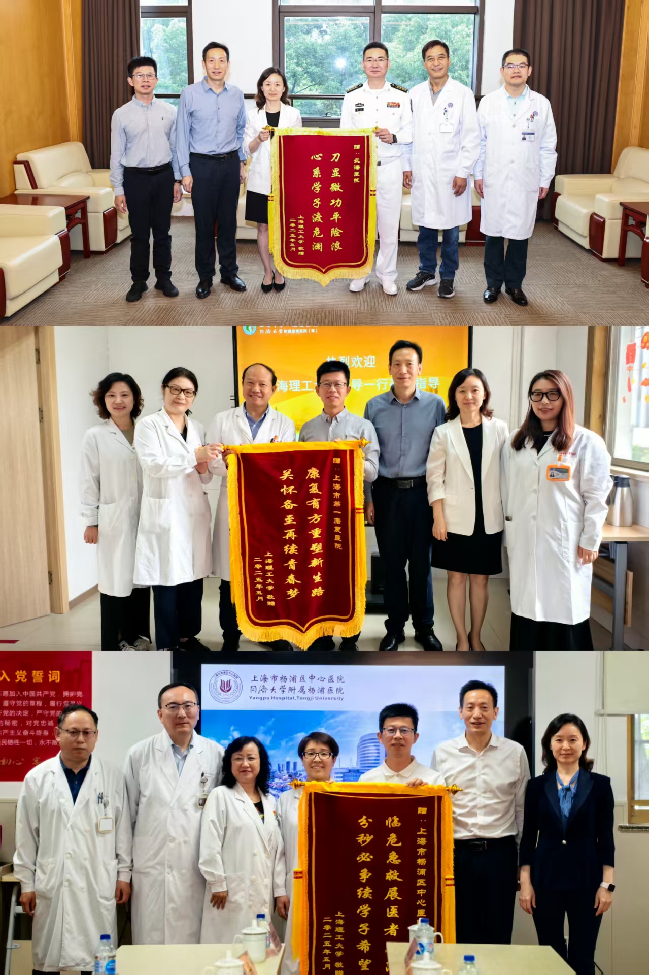 5月27日至28日,学公司党委副书记、副董事长刘德强,健康公司党委书记姚秀雯、党委副书记李陈财及党政办有关同志先后走访杨浦区中心医院、上海市第一康复医院、长海医院,向三家医院赠送锦旗,对医院长期以来对集团的支持和帮助、对师生的关心和关怀表示感谢。