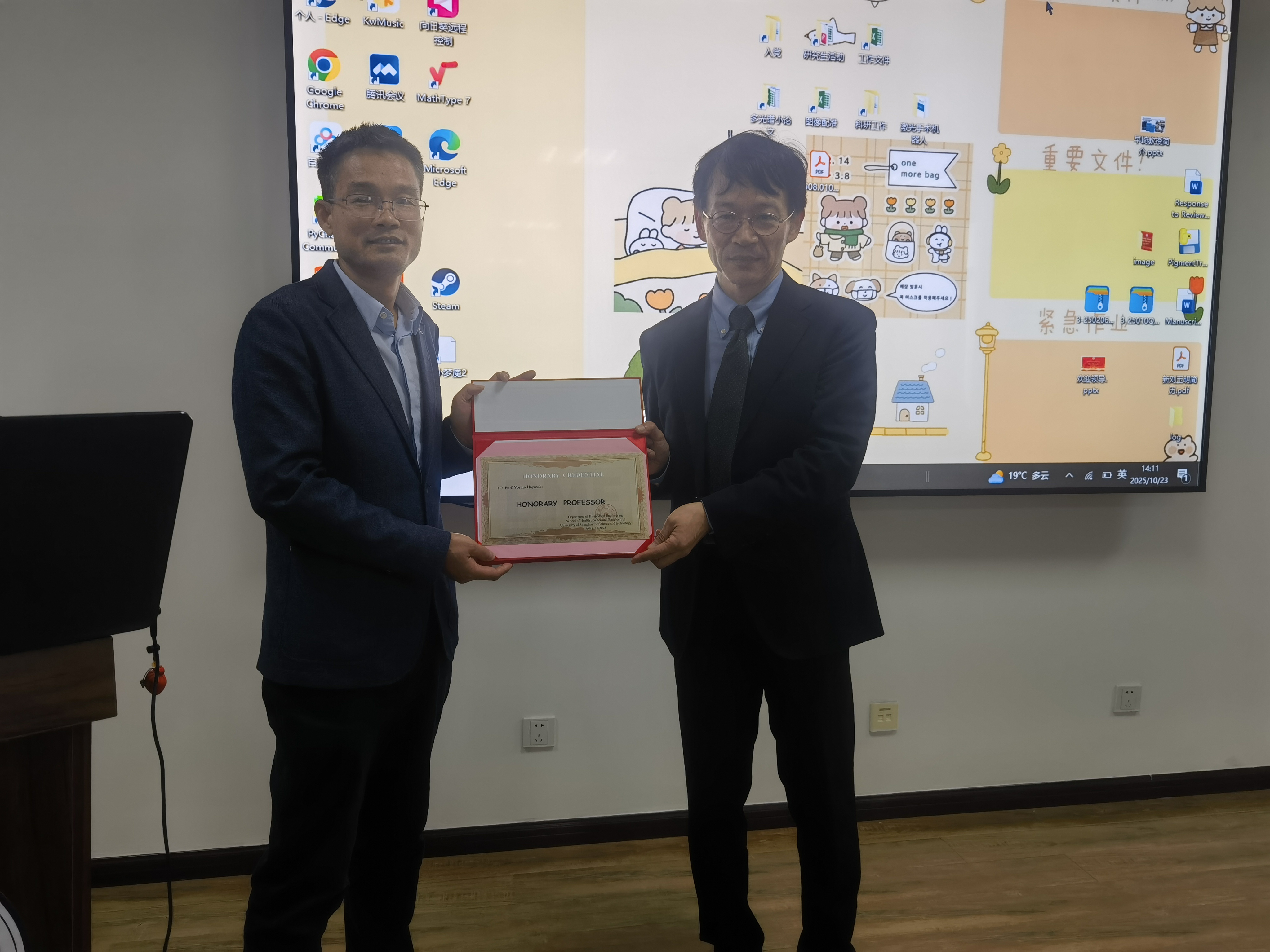 Hayasaki教授主要从事光学系统设计研究,涉及信息光学、光学测量及激光医学等领域。现任SPIE会士(国际光学工程学会会士),并属于日本光学学会(OSJ)、日本应用物理学会(JSAP)等学术团体成员。生物医学工程系主任严荣国教授代表学院向 Hayasaki教授颁发“荣誉教授”聘书,旨在为BME光学与生物医学交叉领域的人才培养和国际合作注入新动能。