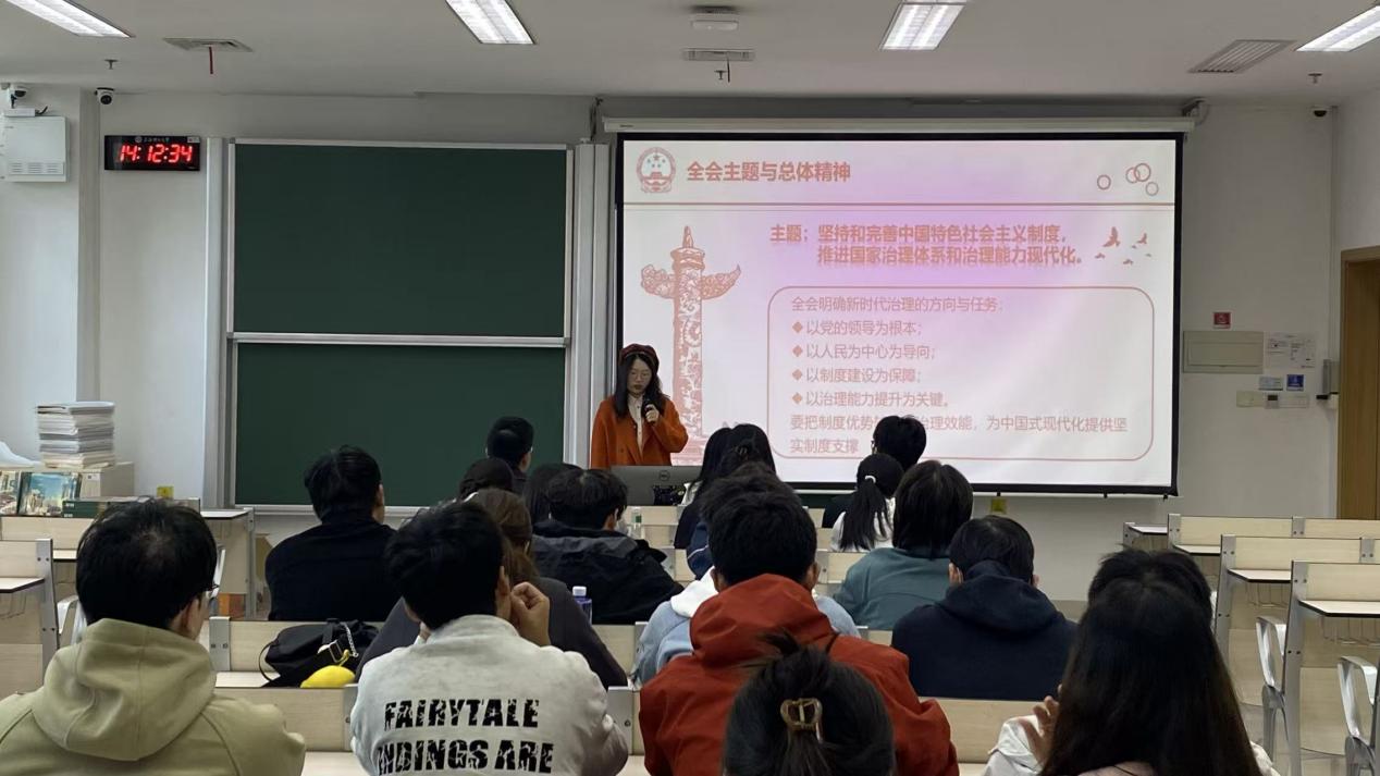活动伊始,党支部副书记郑妍带领大家深入学习了党的二十届四中全会精神。郑妍紧扣全会主题,详细解读了“坚持和完善中国特色社会主义制度、推进国家治理体系和治理能力现代化”这一核心内容,阐述了“六个坚持”的根本方针,强调了新时代推进国家治理现代化的战略意义。通过生动的讲解和丰富的案例分析,党员们深刻领会到了全会精神,明确自身在新时代背景下的责任与担当,进一步坚定了理想信念。