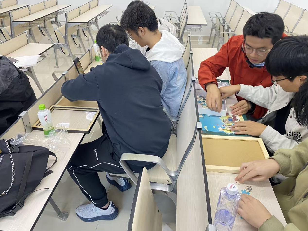 理论学习结束后,党支部组织开展了“党史拼图”活动。党员们两人一组,迅速投入到拼图竞赛中。现场照片记录下了这紧张而有序的场景:党员们围坐在拼图前,神情专注,手指灵巧地拼接着每一块图片;有的组员低声讨论,默契配合;有的组员则分工明确,力求快速完成拼图。拼图内容丰富多样,涵盖了党的重大历史事件、重要会议和精神象征。在拼图过程中,党员们不仅锻炼了团队协作能力,还重温了党的光辉历程,进一步加深了对党史知识的理解和记忆。